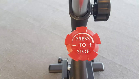 如何刹车?动感单车上有一个“STOP”按钮,轻轻按一下是没有效果的,需要加重按才能停下来。摩擦式阻力调节的单车通过刹车皮(羊毛毡\牛皮)摩擦来制动,磁控地就是通过磁铁物理原理来刹车,相比而言,摩擦式比较快,更容易停下来。同时最新型的有二合一刹车。