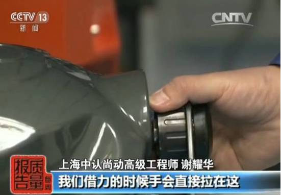 在实验室记者看到,检测人员将测试用标准手指放入跑步机前端的按摩头部件中,如果手指可以深入按摩头部件的缝隙,这台样品就被判定为严重不合格。检测人员用树枝模拟人的手指,演示了这一项目不合格可能造成的后果。我们在做按摩的时候,有时候会站立不稳,站不稳时手会去撑那个支撑物,借力时手会直接拉在这儿,手指会进到里面,在飞速运转时,手指头就没了。